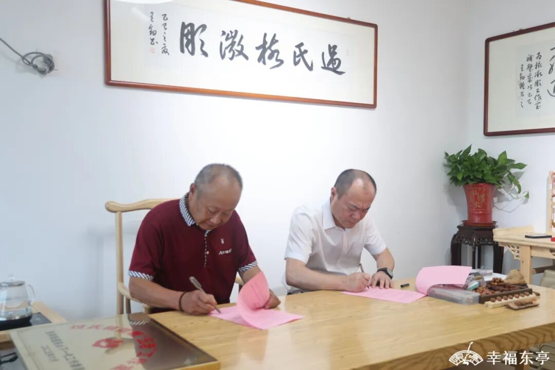 柏庄社区党总支书记陈建国与过氏核微雕传承人过振远共同签署《工作室合作协议》